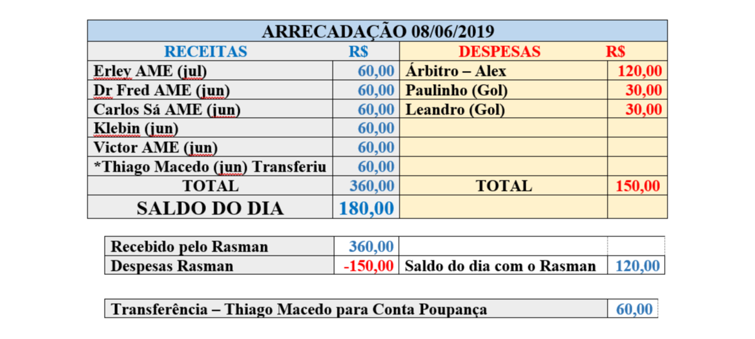 Neste sábado, mais uma partida bem disputada, embora o placar tenha sido de 5 a 2. A dupla de ataque dos Verdes (Thiago Macedo e Tetê) foi mais eficiente que a dupla de ataque dos Vermelhos (Marquinho e Romário).